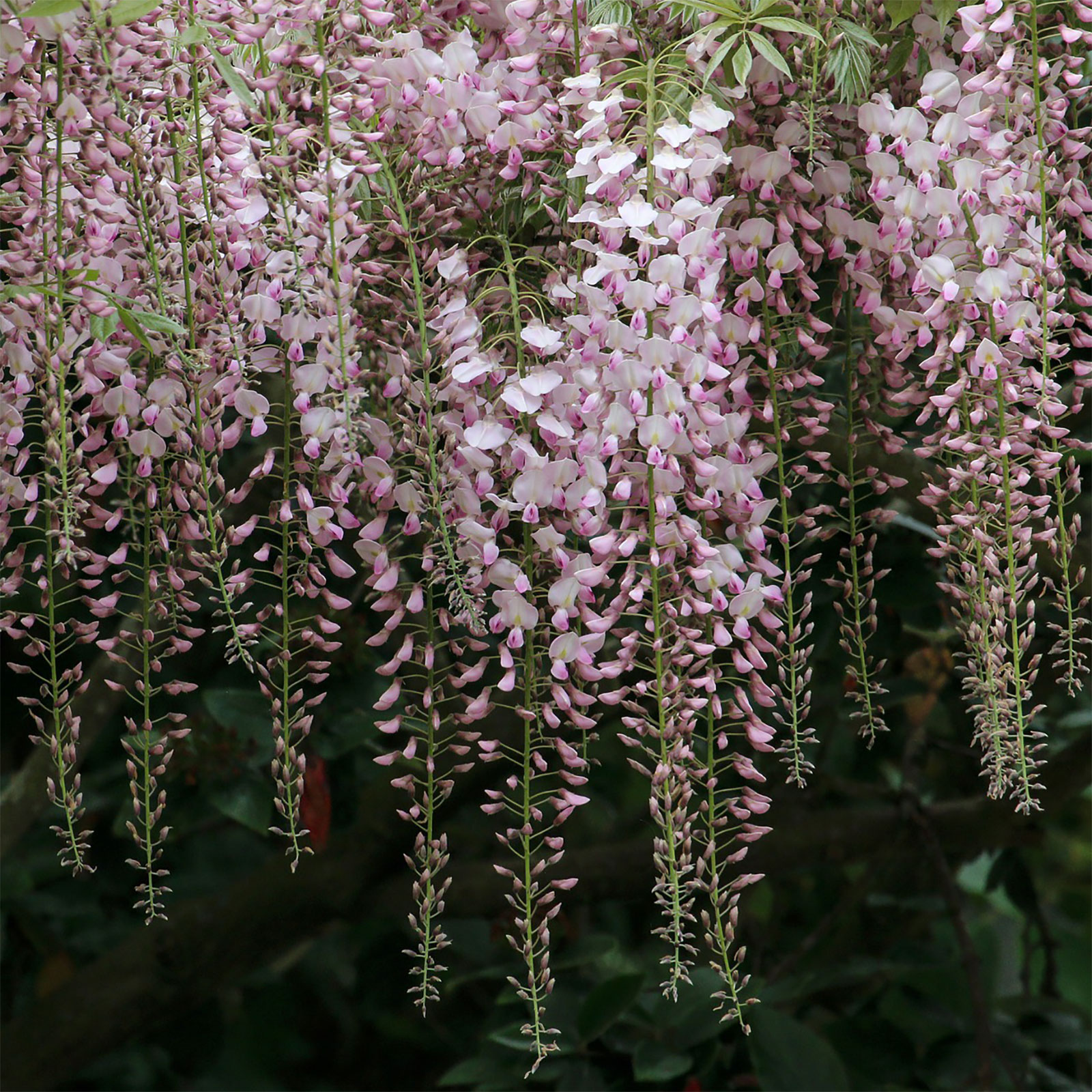 Der Wisteria sinensis ist ursprünglich in China beheimatet. Die sommergrüne und besonders langlebige Kletterpflanze bildet zur Blütezeit überwältigende, rosafarbene Blütentrauben mit einer Länge von bis zu 30 cm. Der japanische Blauregen sollte an einem sonnigen, warmen und geschützten Standort im Garten gehalten werden.