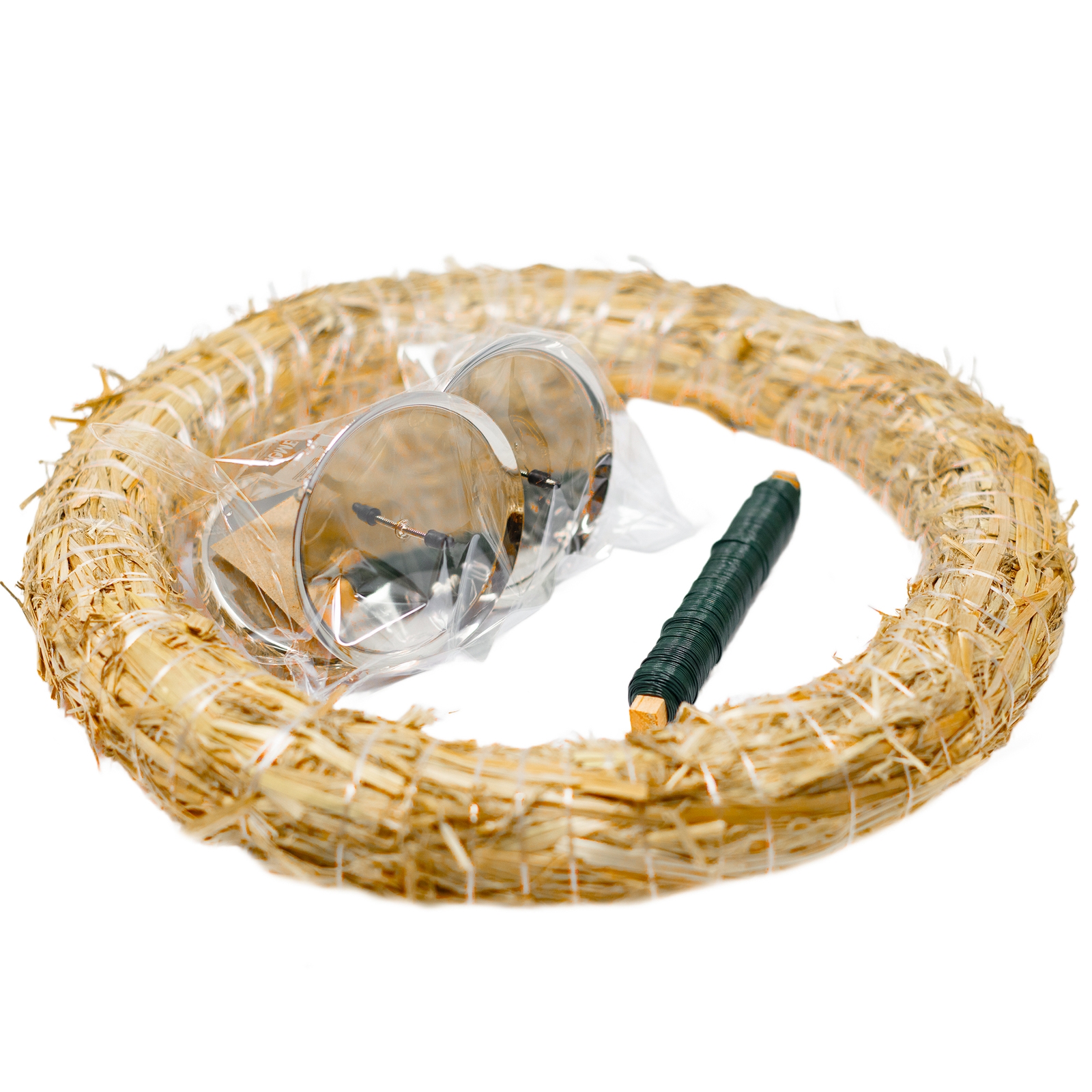 Adventskranz-DIY-Set - Inhalt: 1x Strohkranz 30 cm, 4x Kerzenhalter silber 8 cm, 1x Wickeldraht grün 100g