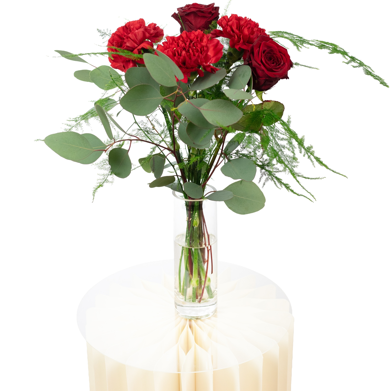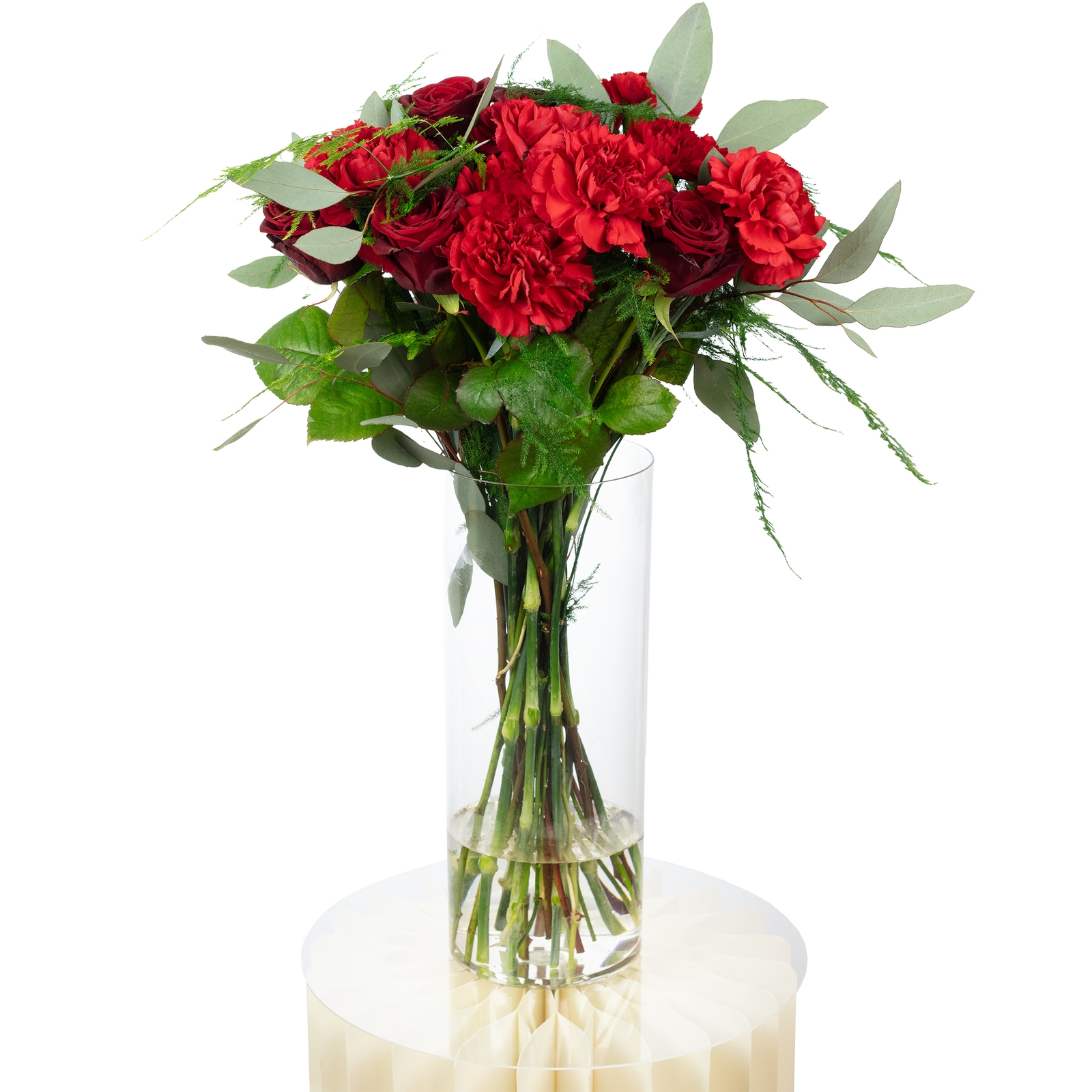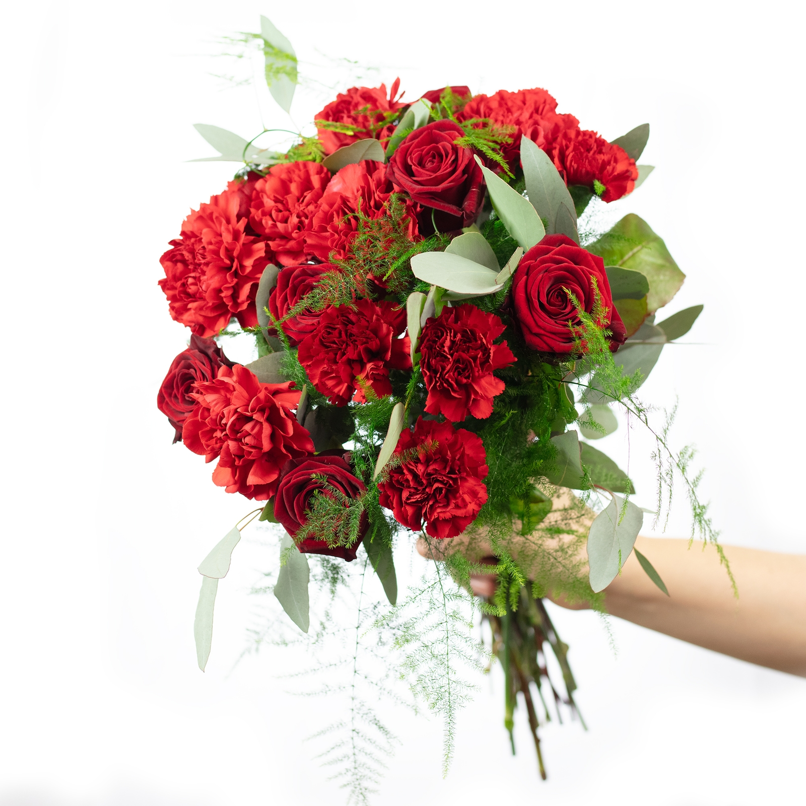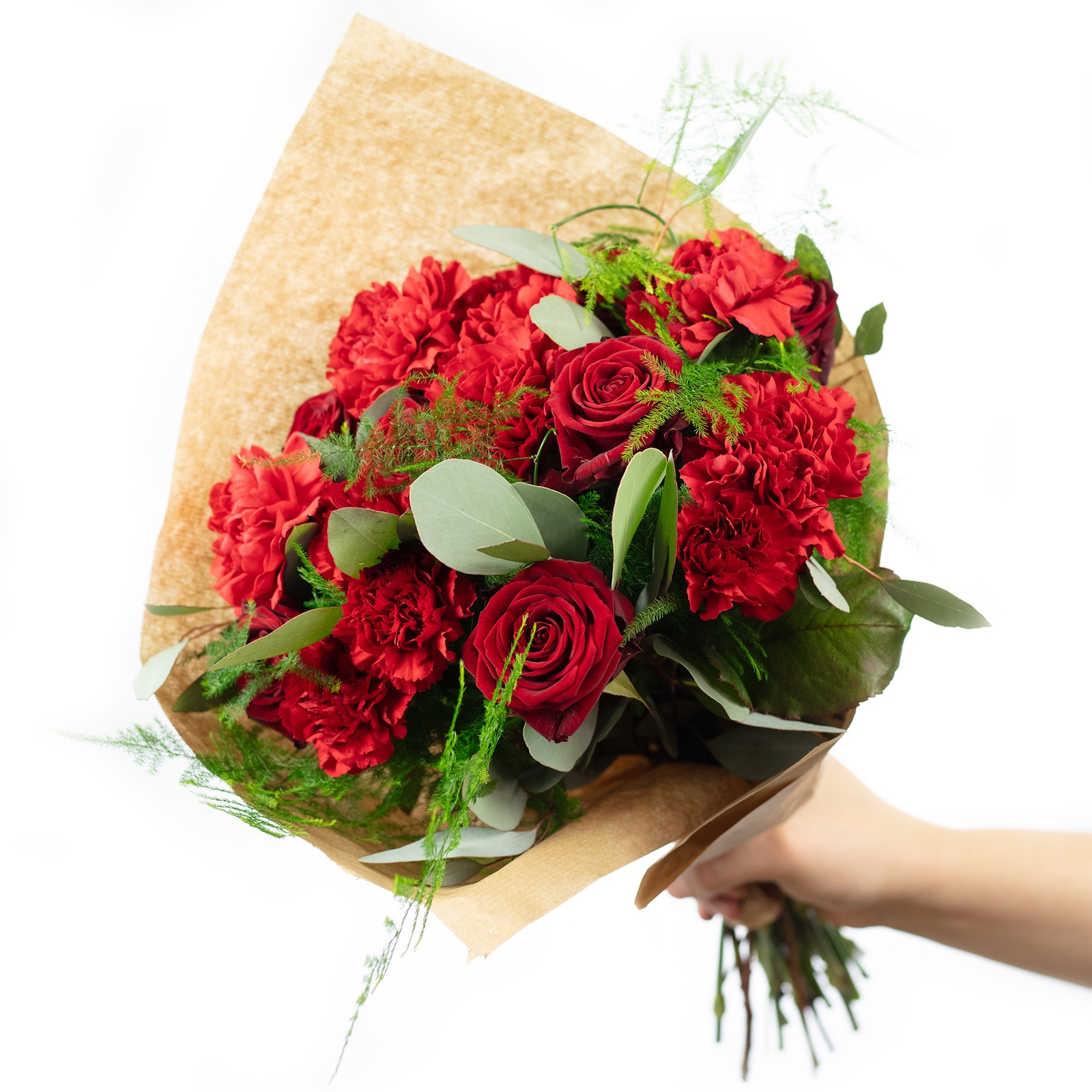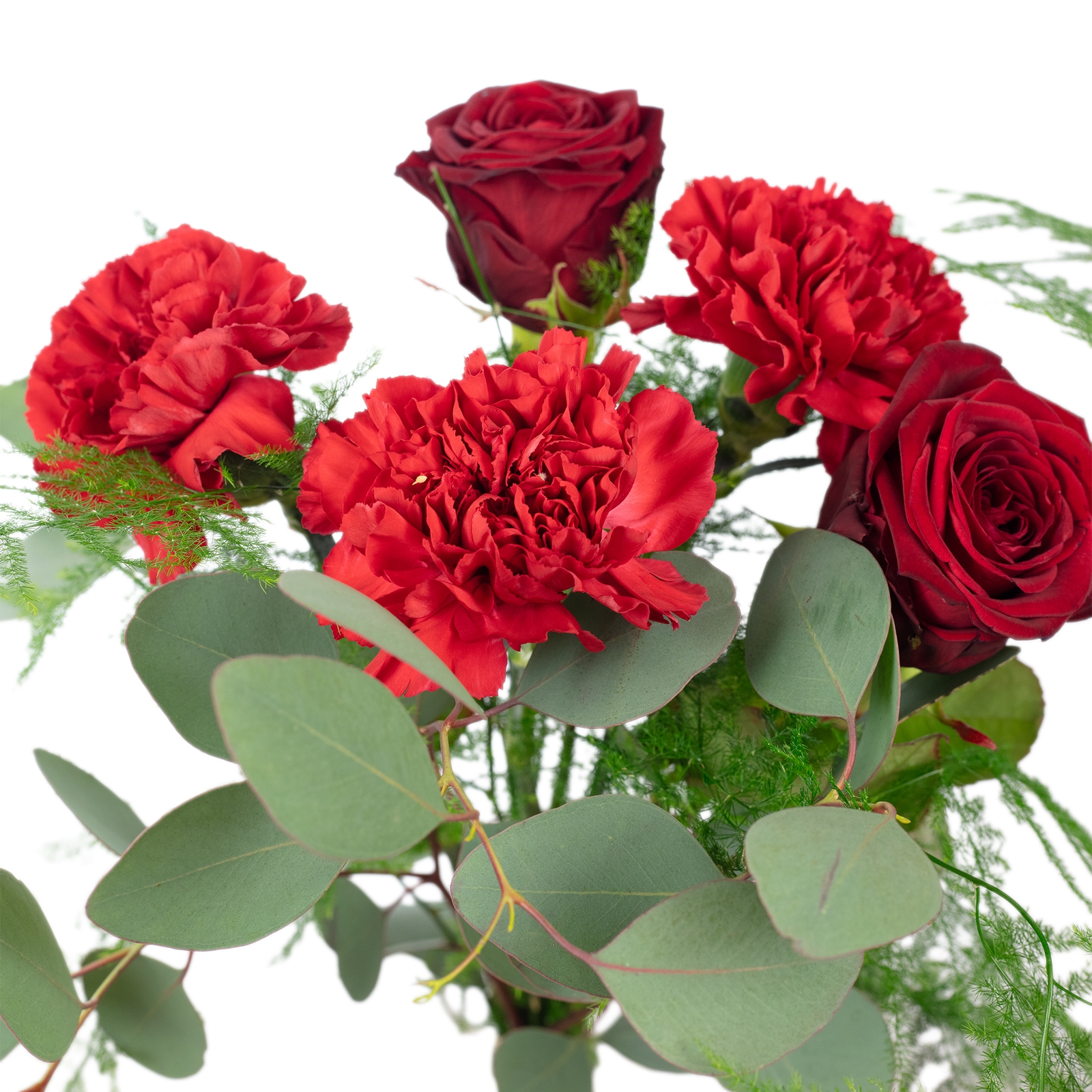 - WARMER STRAUß IN TIEFEM ROT: Edle Rosen und intensiv rote Nelken bilden das Herz dieses Bouquets – kräftig in der Farbe, voller Ausdruck und mit einer emotionalen, warmen Ausstrahlung, die sofort berührt.