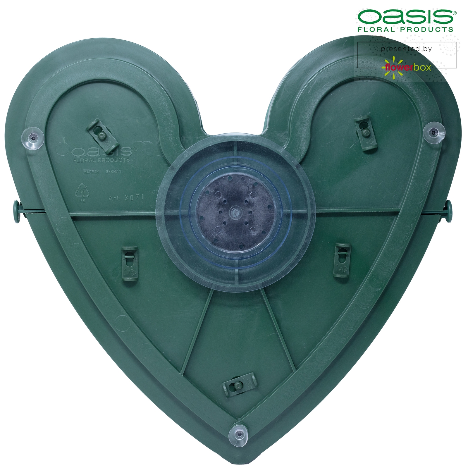 Marke: OASIS®, Form: Herz, Schaum-Art: Nass, Unterlage: Kunststoffunterlage, Länge: 42cm, Breite: 40cm, Höhe: 7.5cm