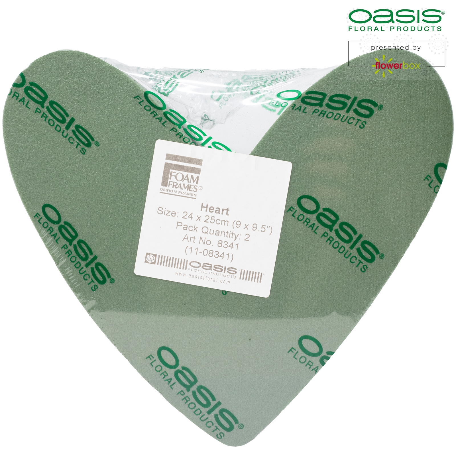 Marke: OASIS®, Form: Herz, Schaum-Art: Nass, Unterlage: FOAM FRAMES, Länge: 24cm, Breite: 25cm, Höhe: 6cm