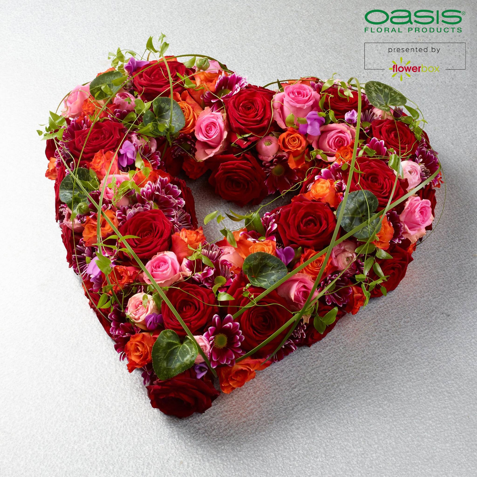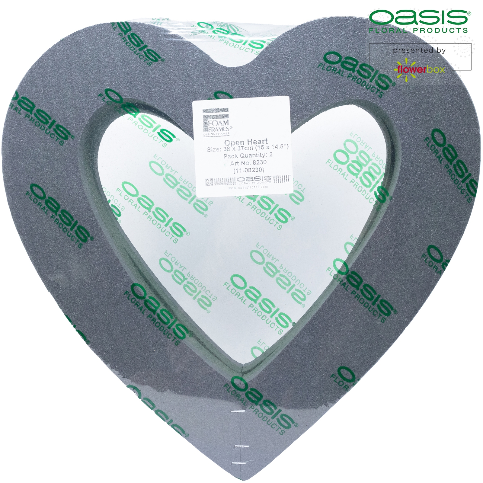 Marke: OASIS®, Form: Herz, Schaum-Art: Nass, Unterlage: FOAM FRAMES, Länge: 37cm, Breite: 36cm, Höhe: 6cm