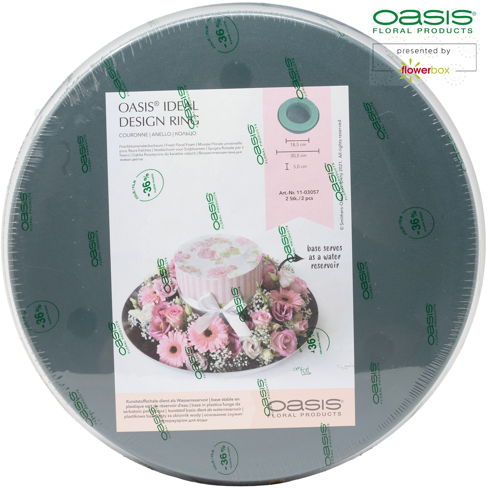 Marke: OASIS®, Form: Ring & Kranz, Schaum-Art: Nass, Unterlage: Kunststoffunterlage, Höhe: 4.5cm, Durchmesser: 30cm