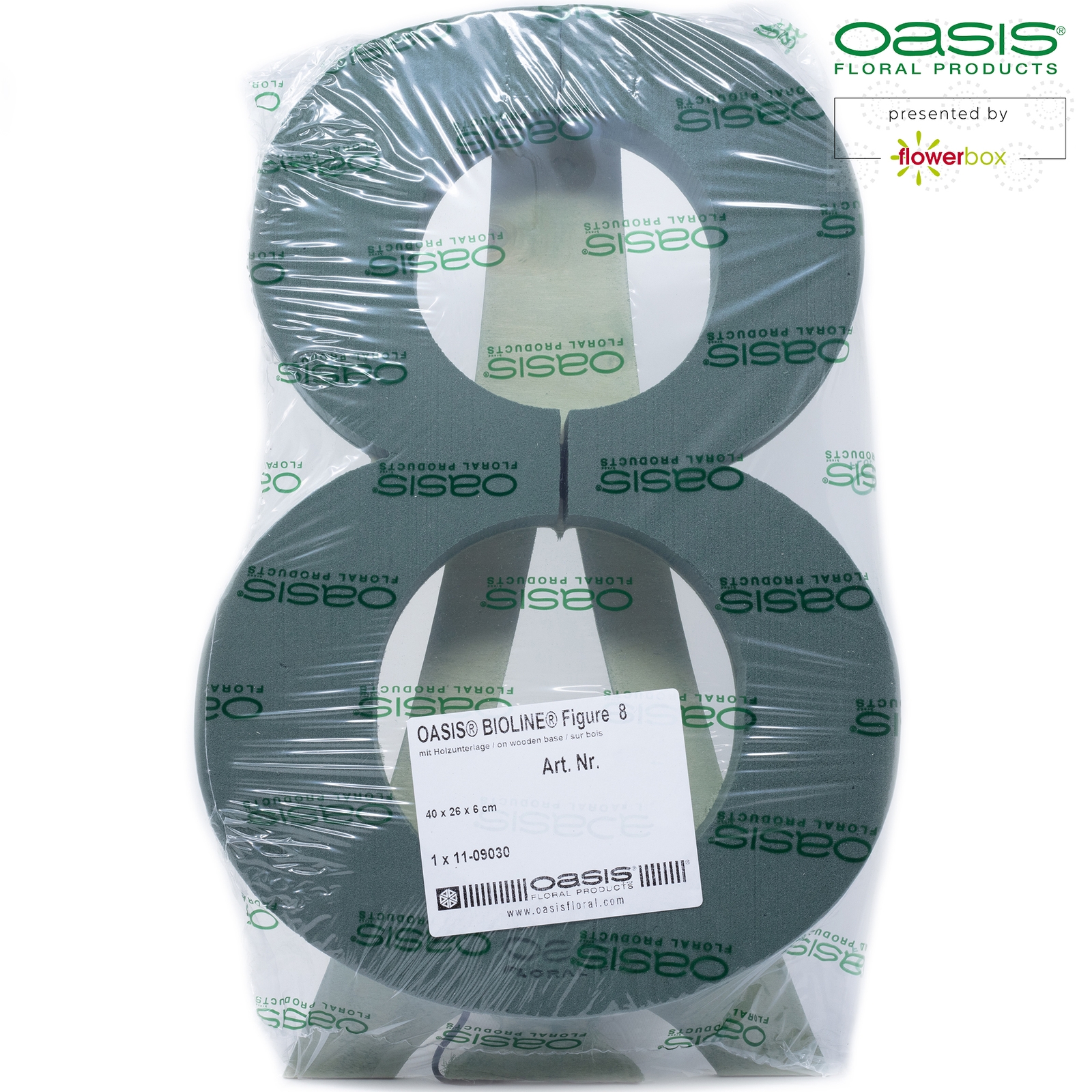 Marke: OASIS®, Form: Zahlen, Schaum-Art: Nass, Unterlage: Bioline, Länge: 40cm, Breite: 26cm, Höhe: 6.5cm