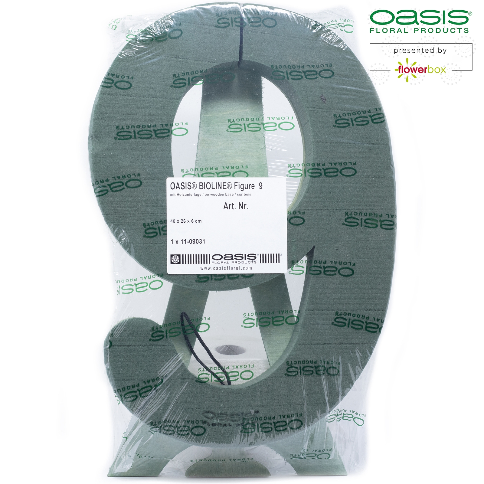 Marke: OASIS®, Form: Zahlen, Schaum-Art: Nass, Unterlage: Bioline, Länge: 40cm, Breite: 26cm, Höhe: 6.5cm