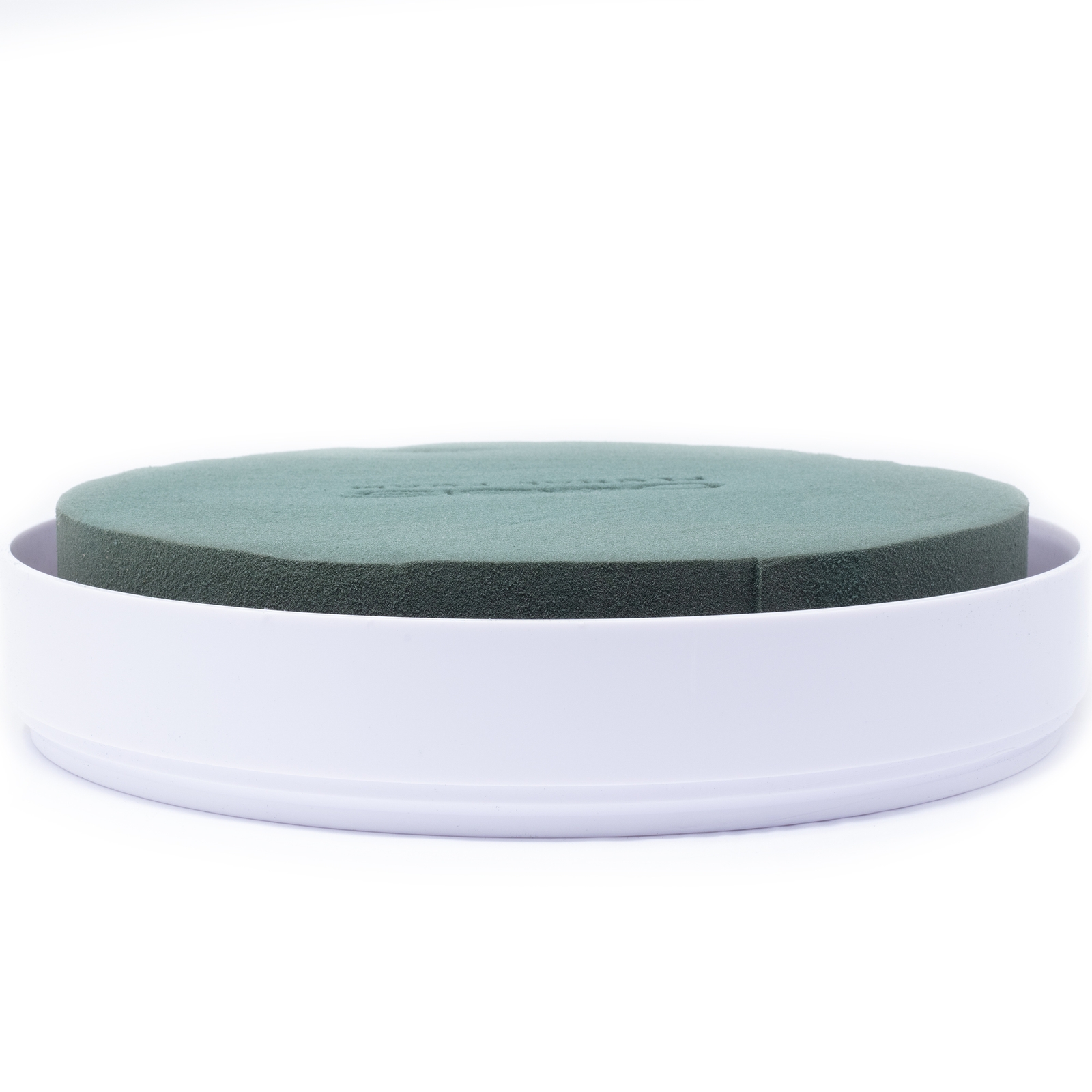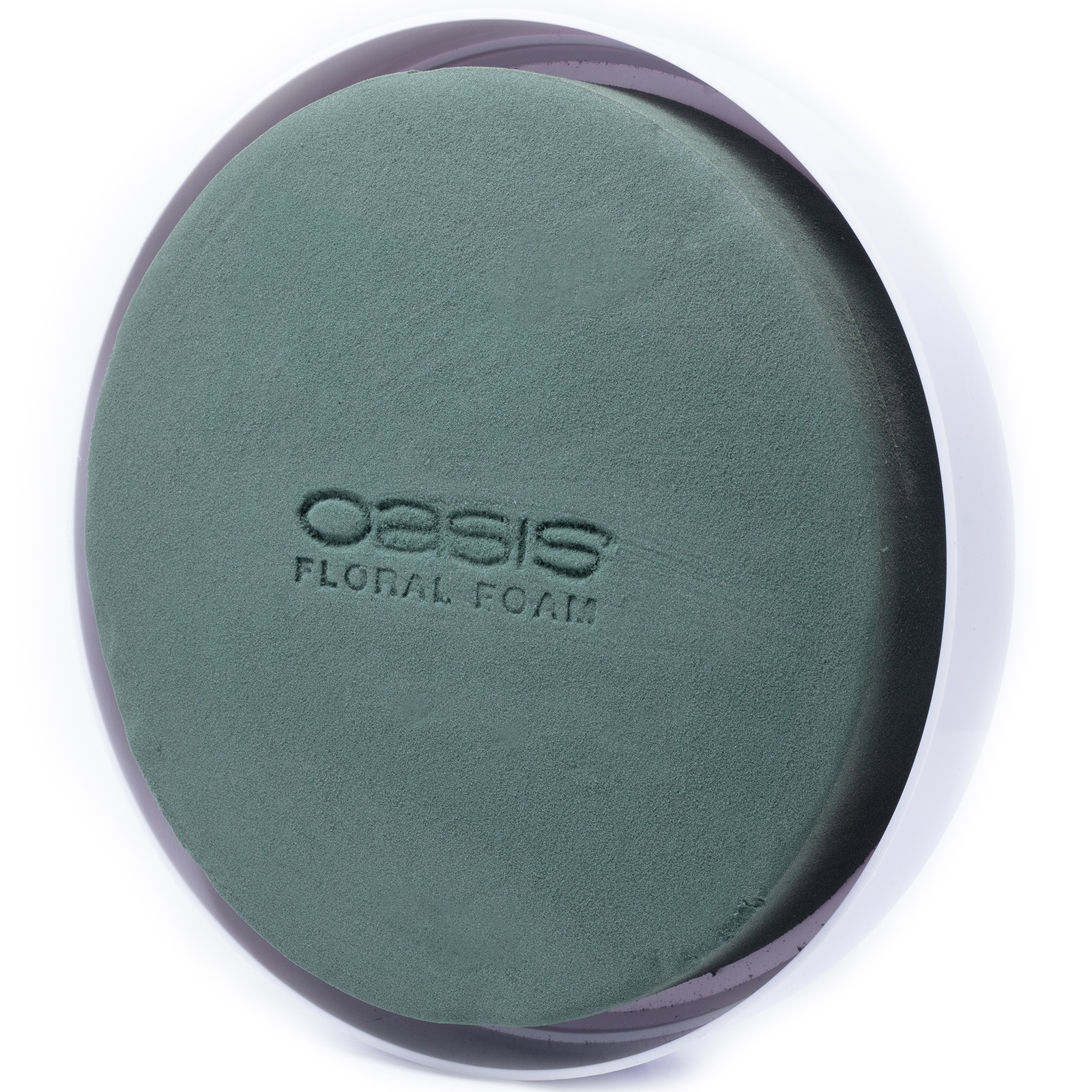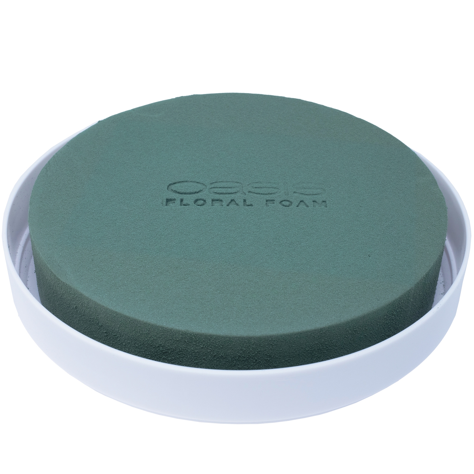 Marke: OASIS® Steckschaumsorte: Frischblumensteckschaum Steckschaumfarbe: grün Unterlage: Kunststoff Durchmesser in cm: 30 cm Verkaufseinheit: Stück Lieferzeit: 1-3 Tage