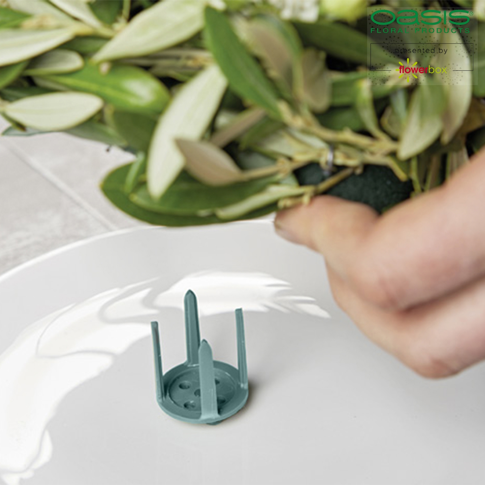 Optimal geeeignet zur Befestigung von Steckschaum auf glatten Flächen (z. B. in Gefäßen) oder von Kerzen auf Blumensteckschaum mit Hilfe von OASIS® Fix. Befestigung von Steckschaum auf glatten Flächen: Die Fläche sollte sauber und trocken sein. Den Pinholder mit der flachen Seite auf der Fläche fixieren und den Steckschaum auf die Stifte drücken. Befestigung von Kerzen auf Steckschaum: Die Kerze auf dem "Teller" des Pinholders befestigen, den Pinholder mit der Spitze in den Schaum stecken. TIPP: In jedem Fall ist darauf zu achten, dass die Fläche sauber, trocken und fettfrei ist, da ansonsten die Klebekraft der Halter beeinträchtigt werden kann.
