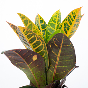 Der Wunderstrauch (auch Kroton genannt) stammt ursprünglich aus Südostasien und wird hierzulande aufgrund seiner leuchtend bunten Blätter gerne als Zimmerpflanze kultiviert. Codiaeum Petra stellt keine großen Ansprüche und ist daher ein pflegeleichter Mitbewohner. Je heller jedoch der Standort, desto bunter prägen sich die Farben seiner Blätter aus, welche von Gelb über Grün bis hin zu Rot oder gar Lila erstrahlen können.