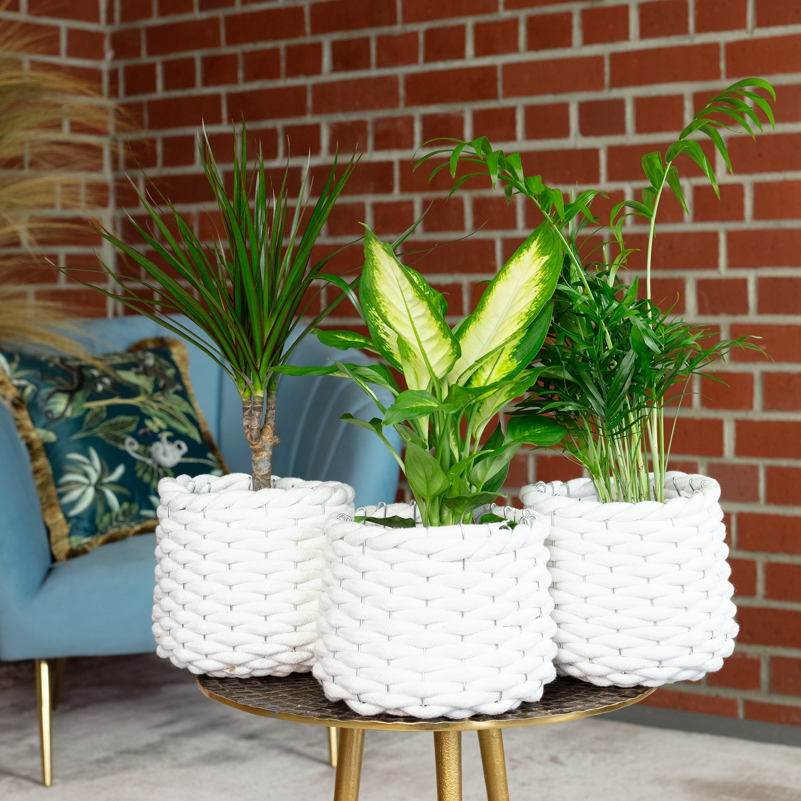 Dieses 3er-Set aus Chamaedorea, Dieffenbachie & Dracaena bringt jede Menge frisches Grün in dein Zuhause! Ob du nach einer tropischen Note für dein Wohnzimmer suchst, dein Büro gemütlicher gestalten möchtest oder einfach deine Pflanzen-Sammlung erweitern willst – dieses Set hat alles, was du brauchst. Die Kombination aus den zarten Palmwedeln der Chamaedorea, den kunstvoll gemusterten Blättern der Dieffenbachie und dem eleganten Wuchs der Dracaena sorgt für ein harmonisches, stilvolles Gesamtbild.