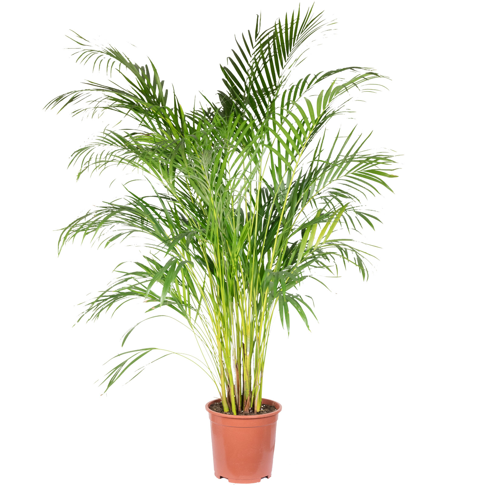 Die immergrüne Goldfruchtpalme, die auch Arecapalme genannt wird, bringt als tropische Zimmerpflanze ganzjährig Urlaubsfeeling in Ihr Zuhause. Zudem verbessert sie aufgrund ihrer luftreinigenden Eigenschaften das Raumklima. Sie besticht durch ihren opulenten, schirmförmigen Schopf mit ausladend überhängenden Wedeln. Da die Arecapalme in den feuchten Tropen Madagaskars beheimatet ist, sollte der Boden stets feucht gehalten werden, ohne dass sie mit ihren Wurzeln im Wasser steht. Sie bevorzugt einen hellen Standort, verträgt jedoch keine direkte Sonneneinstrahlung.